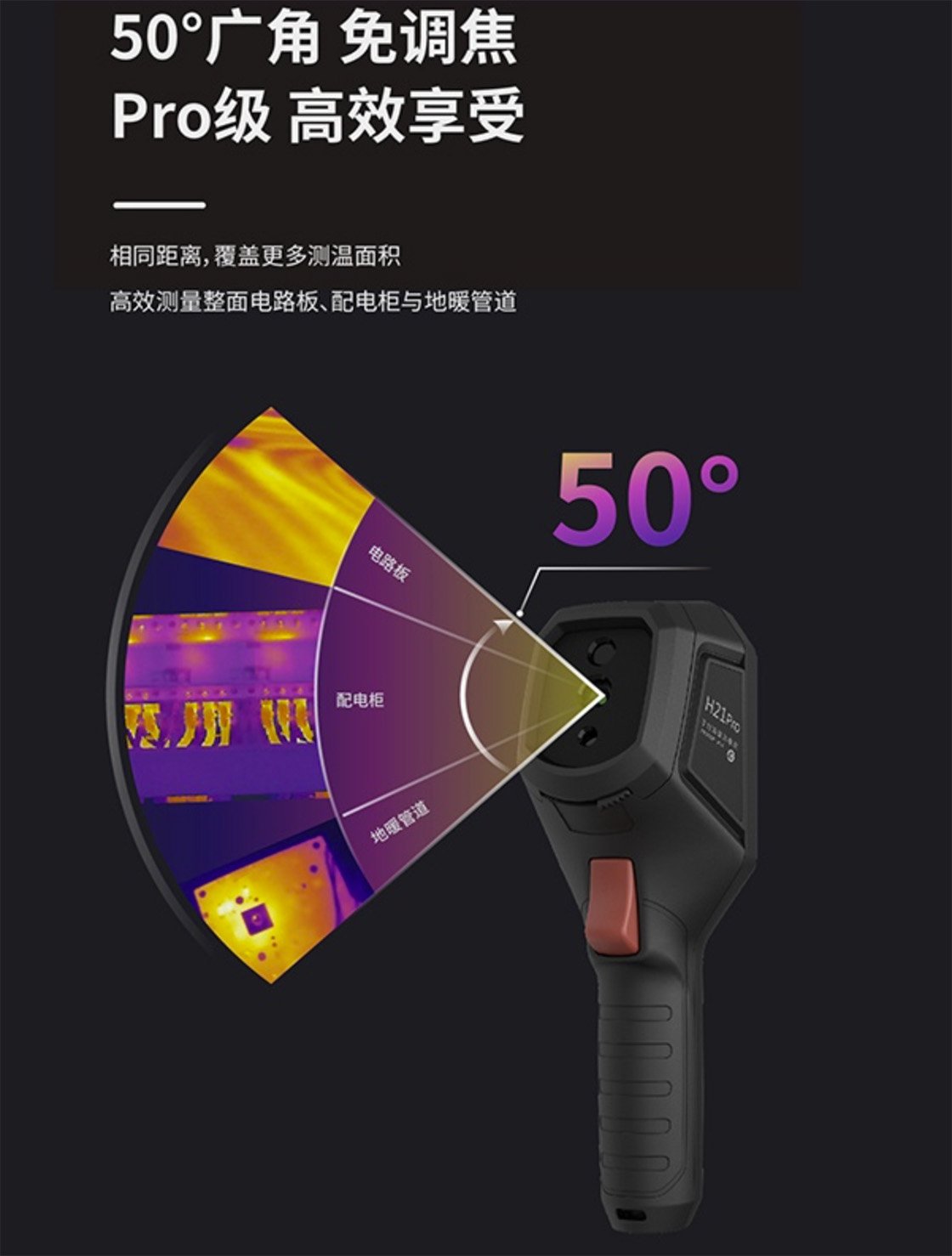 ??低旽21Pro手持測溫熱像儀功能強大、簡單易用,能對環境中高溫目標進行測溫,幫助現場人員快速排查故障,輔助決策,確保安全,是建筑、電氣、機械等有測溫需求領域的理想工具。設備采用 3.2"觸摸屏,配備了 256×192 紅外探測器,幫助您發現隱藏問題,使您能更迅速的做出關鍵決策。