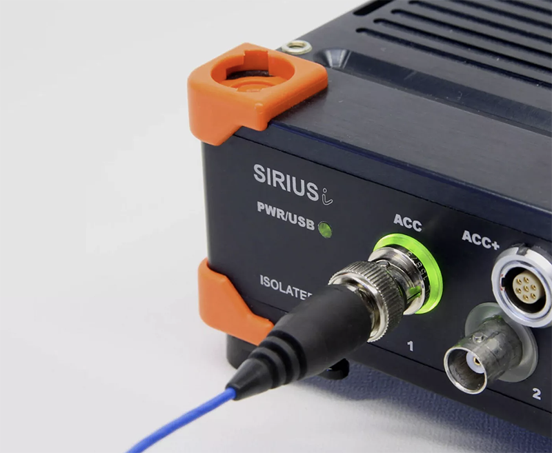 SIRIUS ACC 前端放大器輸入接頭上有一個(gè) LED 狀態(tài)指示環(huán)。在接入 IEPE 傳感器后,放大器會(huì)持續(xù)監(jiān)測(cè)流向傳感器的電流,根據(jù)傳感器的阻抗是否正常,LED 指示環(huán)會(huì)自動(dòng)切換為綠色或者紅色。