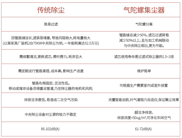Gyro Air氣陀螺木工集塵器具有不同于傳統集塵器的工作原理,在設計上海威提出了“軸向離心分離技術”:氣陀螺技術。氣陀螺技術將水平流動的粉塵